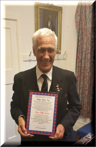 What a wonderful surprise awaited E Comp Dennis Roberts at our Installation on 24th October. As the meeting reached its final stages, in what can only be described as a cloak of secrecy fitting an episode of ‘Spooks’, the Most Excellent Grand Superintendent, E Comp Graham King, imagebestowed him with his Certificate for Meritorious Service. In the presence of over 50 Royal Arch Masons attending the Innsworth Chapter Installation, He stood proud and somewhat shocked as the citation was read out to all assembled. Dennis has been a stalwart of Innsworth Chapter for over 31 years and his good service to the Chapter and the Province at large and his standing merited the recognition being given to him through this award. A man not normally lost for words, Dennis was certainly taken by surprise and shocked but still managed a few words to thank the ME Grand Superintendent for the honour. To mark the occasion he also received a suitably inscribed tankard. Congratulations Dennis. The Companions of Innsworth Chapter look forward to you keeping that tankard full for many years to come.