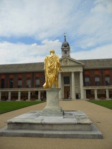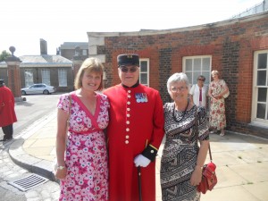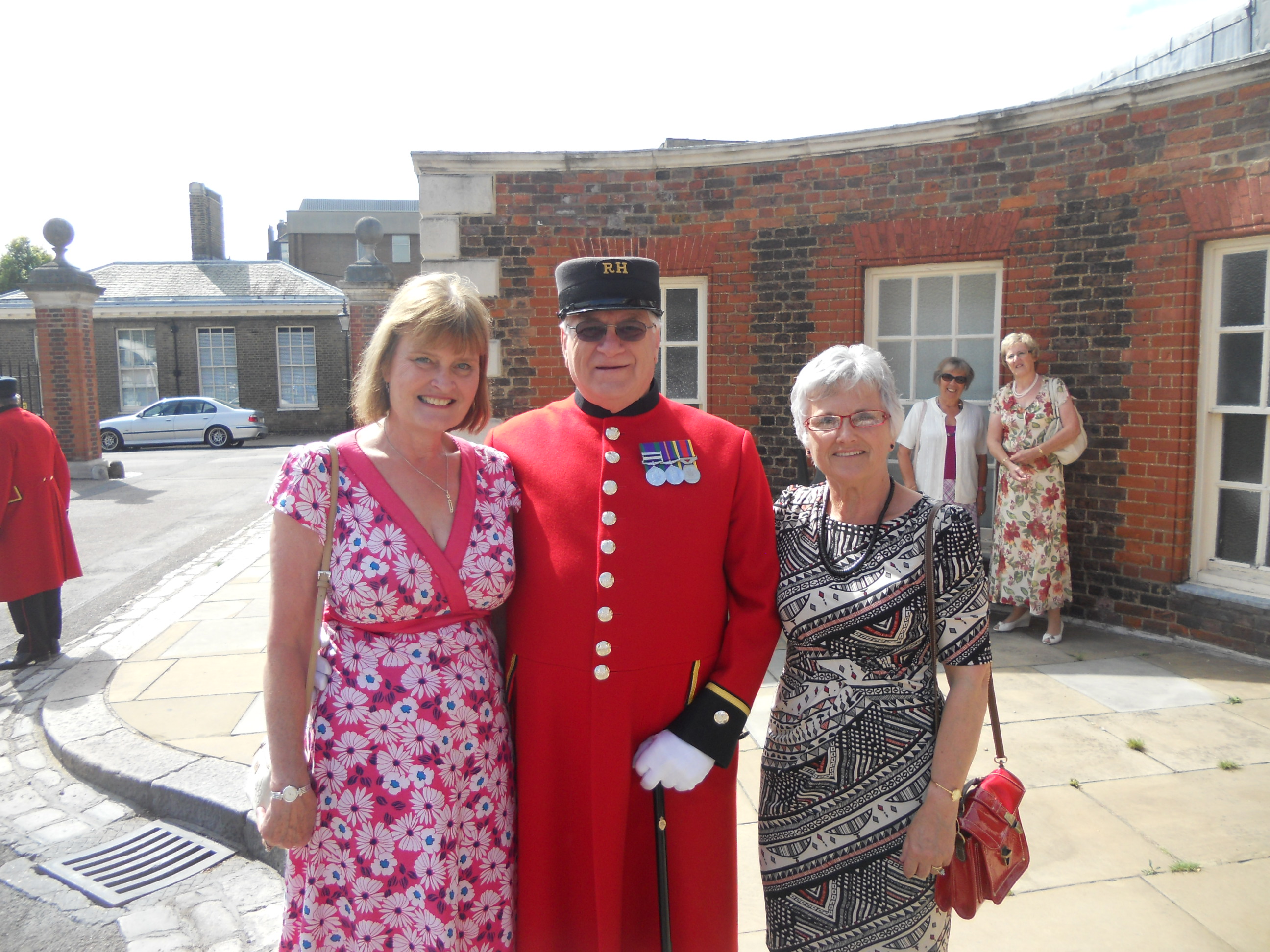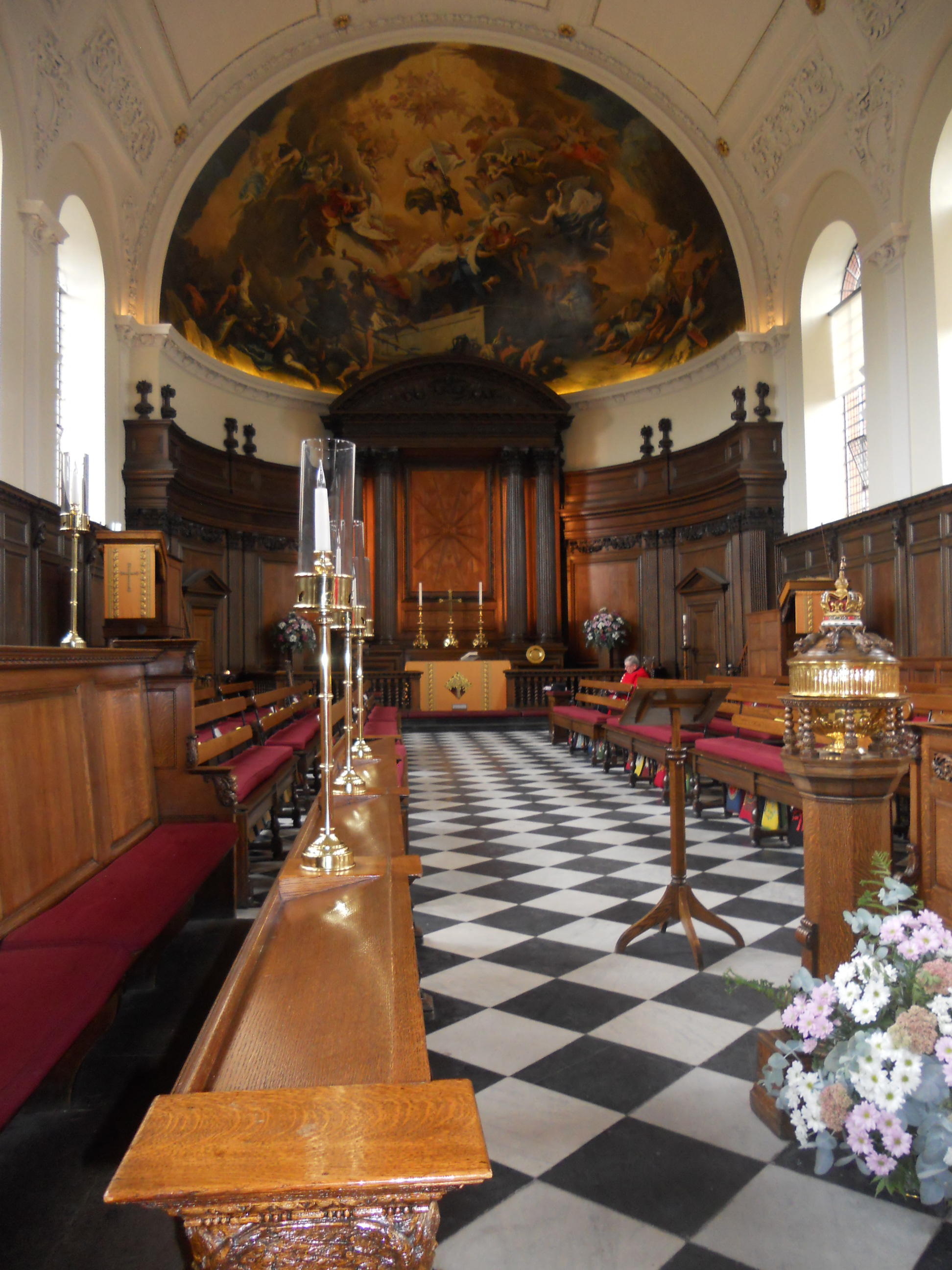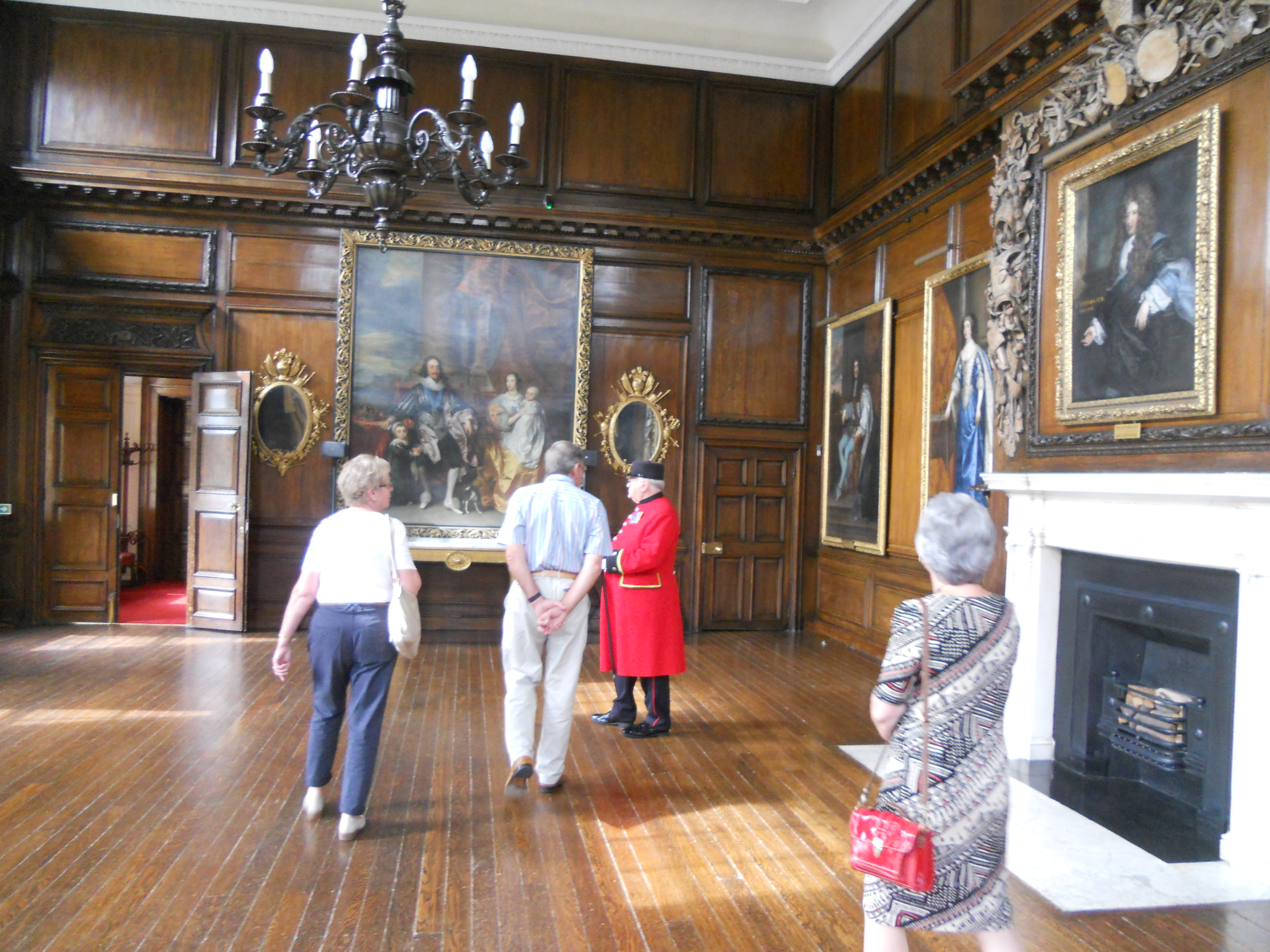 On Tuesday 3 September 2013, three Brethren of Innsworth Lodge joined a Guided Tour of the Royal Hospital Chelsea organised by the Gloucestershire Masonic Society. W.Bros Brian Ashworh, Bill Beedie and Tom Robson, and their ladies, joined approximately 34 other members of the Society and their guests, and travelled by coach from Stroud to Chelsea. After a pre-booked lunch in the Royal Hospital restaurant, the Masonic group were taken on a tour of the RHC and the Wren Chapel by W.Bro Michael Allen LGR, who is in fact one of the men in red – a Chelsea pensioner. Michael gave a terrific tour, laced with anecdotes and historical detail, and he had also managed to get authority to take the group into the State Apartments, which are not usually accessible by the public. The following few photos of the visit will give an idea of how impressive the RHC is.