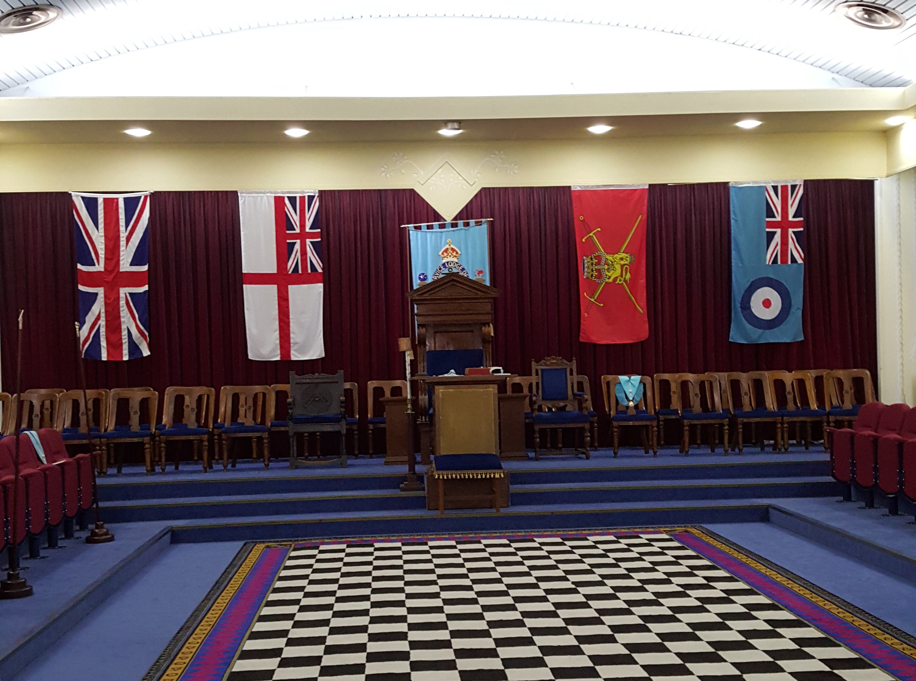 All military Lodges enjoy certain traditions drawn from their service roots and the United Services Lodge is no exception. The 4th of November meeting, being close to Remembrance Sunday, provided a suitable occasion where entitled military masons swapped their Masonic jewels for service decorations and medals to wear in Lodge. This gave our WM and IPM a perfect opportunity to polish their ‘gongs’ for the evening. Several masons also chose to wear military mess dress and all three armed services were represented in this colourfully stylish manner. As always with Circuit of Service Lodges there was a great opportunity to spot the service, corps or regiment from the myriad of derby-templeties being worn in the Lodge room and exchange good military banter often at the expense of a rival Corps, Regiment or service. The work was a well executed initiation ceremony conducted in a lodge room decorated with the flags of all three armed services; thereby further reinforcing the link between the lodge and military service.
