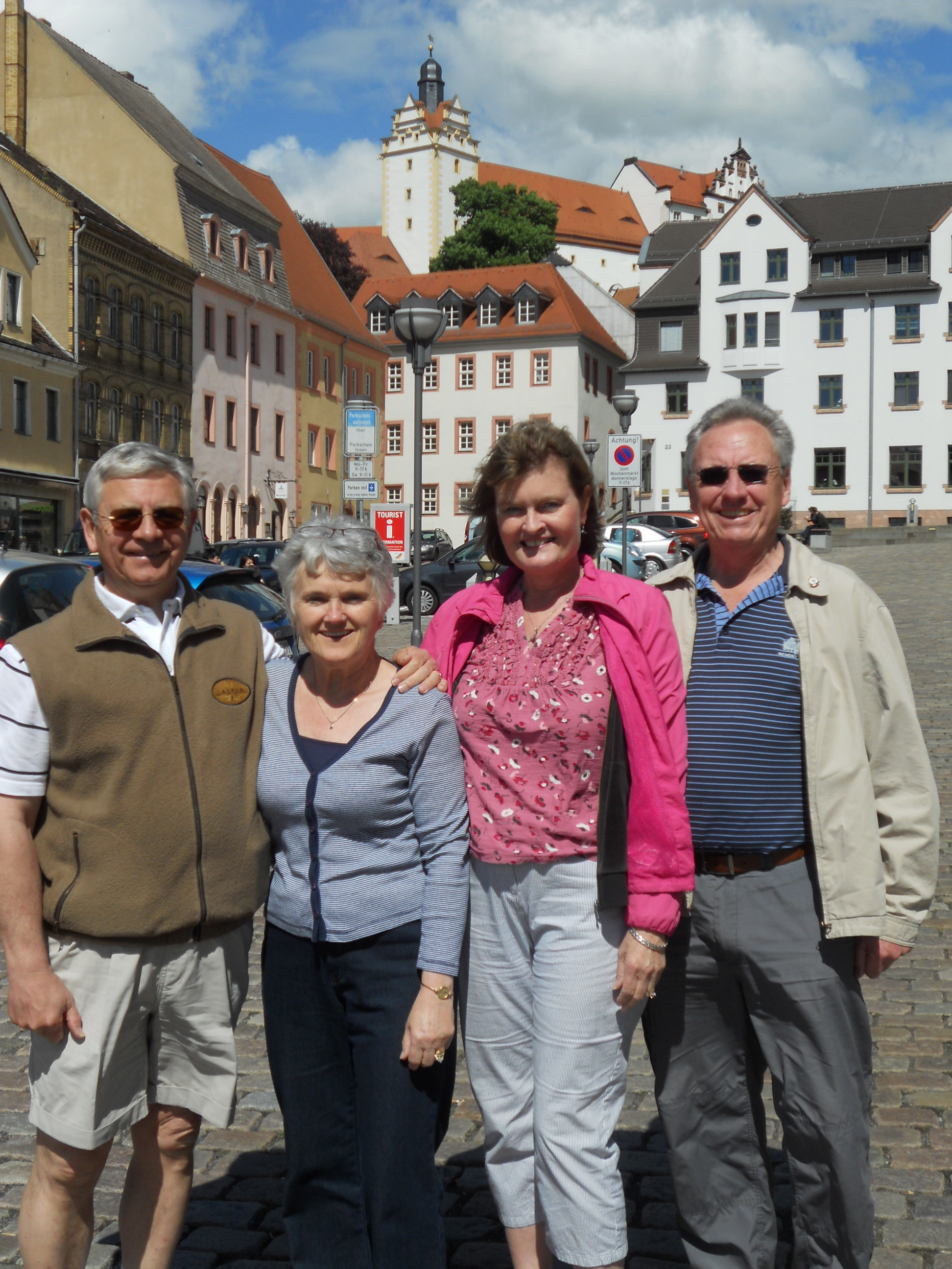 In Colditz town. L to R: W.Bro Bill Beedie, Dorothy Beedie, Hilary Robson & W.Bro Tom Robson