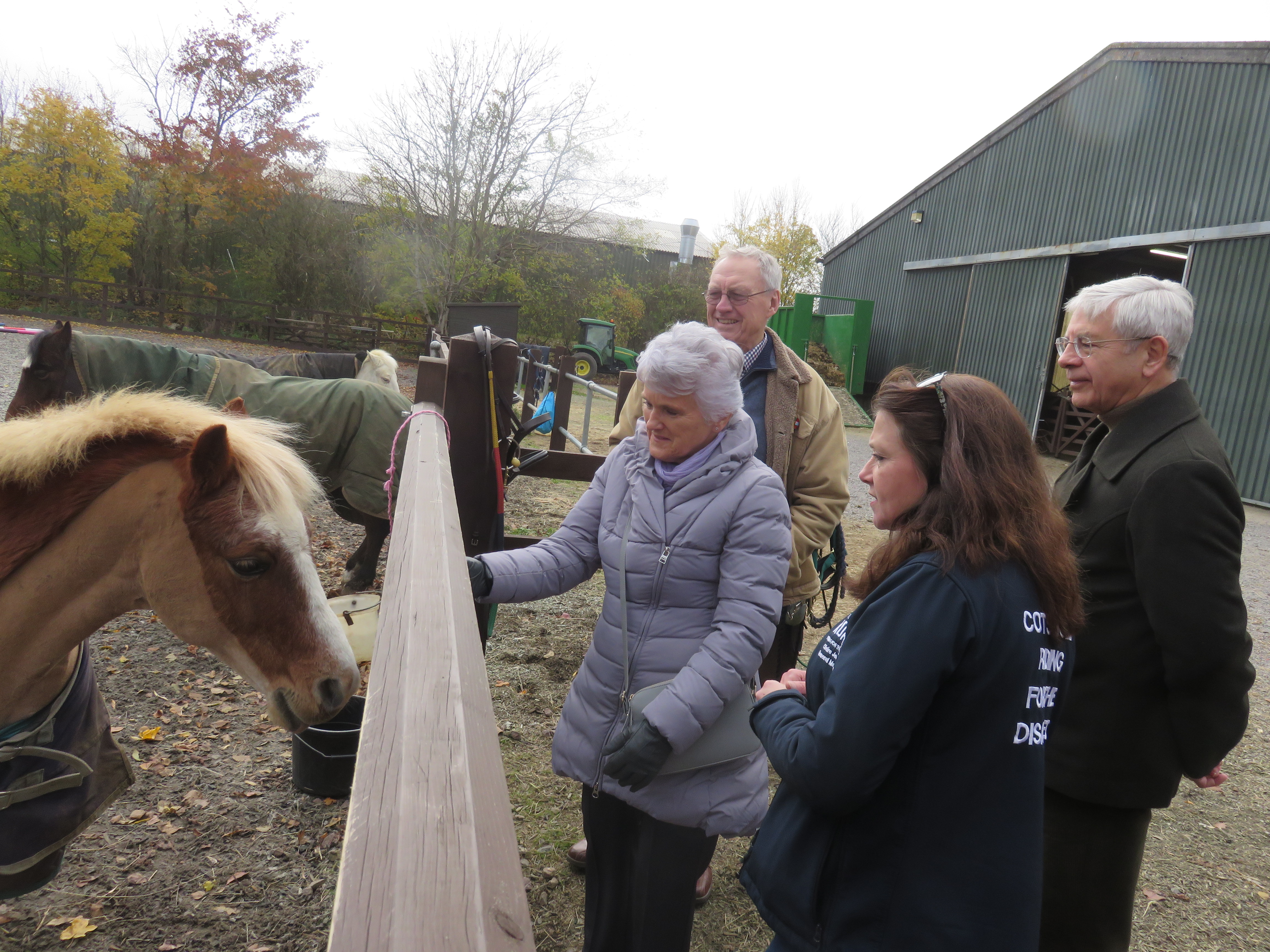 The visitors were shown around the CRDA facilities and saw how it provides invaluable horse-riding opportunities for individuals with physical and mental disabilities, and also for individuals with learning difficulties.  The Charity, one of the largest RDAs in the UK, offers group riding lessons with qualified instructors, supported by up to 3 volunteers per rider, using indoor and outdoor arenas at Cheltenham Racecourse.