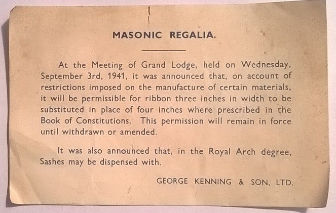 Also found in the box was the following notice, which shows that, even in Lodge, freemasons had to economise during WWII.