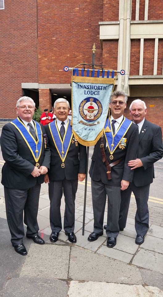 At the head of the Gloucester Masonic marching contingent was the Provincial Grand Master RW Bro Tim Henderson-Ross who led some 30 brethren bearing banners of four of the Lodges that meet in the Gloucester Masonic Hall. With its strong RAF roots, Innsworth was especially proud once again to display its Banner in this glorious City that retains strong links with the RAF and more so this year when we commemorate the 75th Anniversary of the Battle of Britain.
