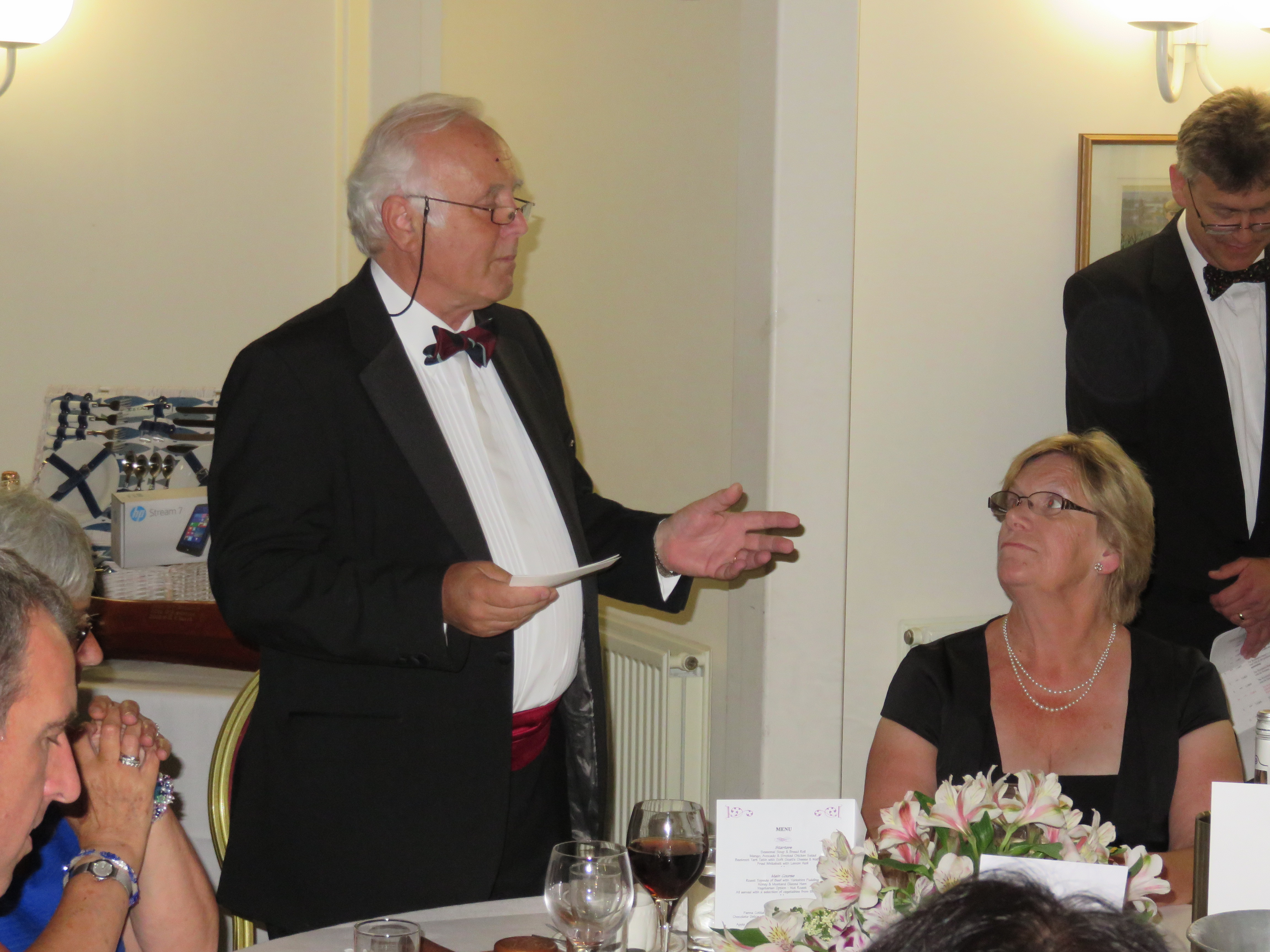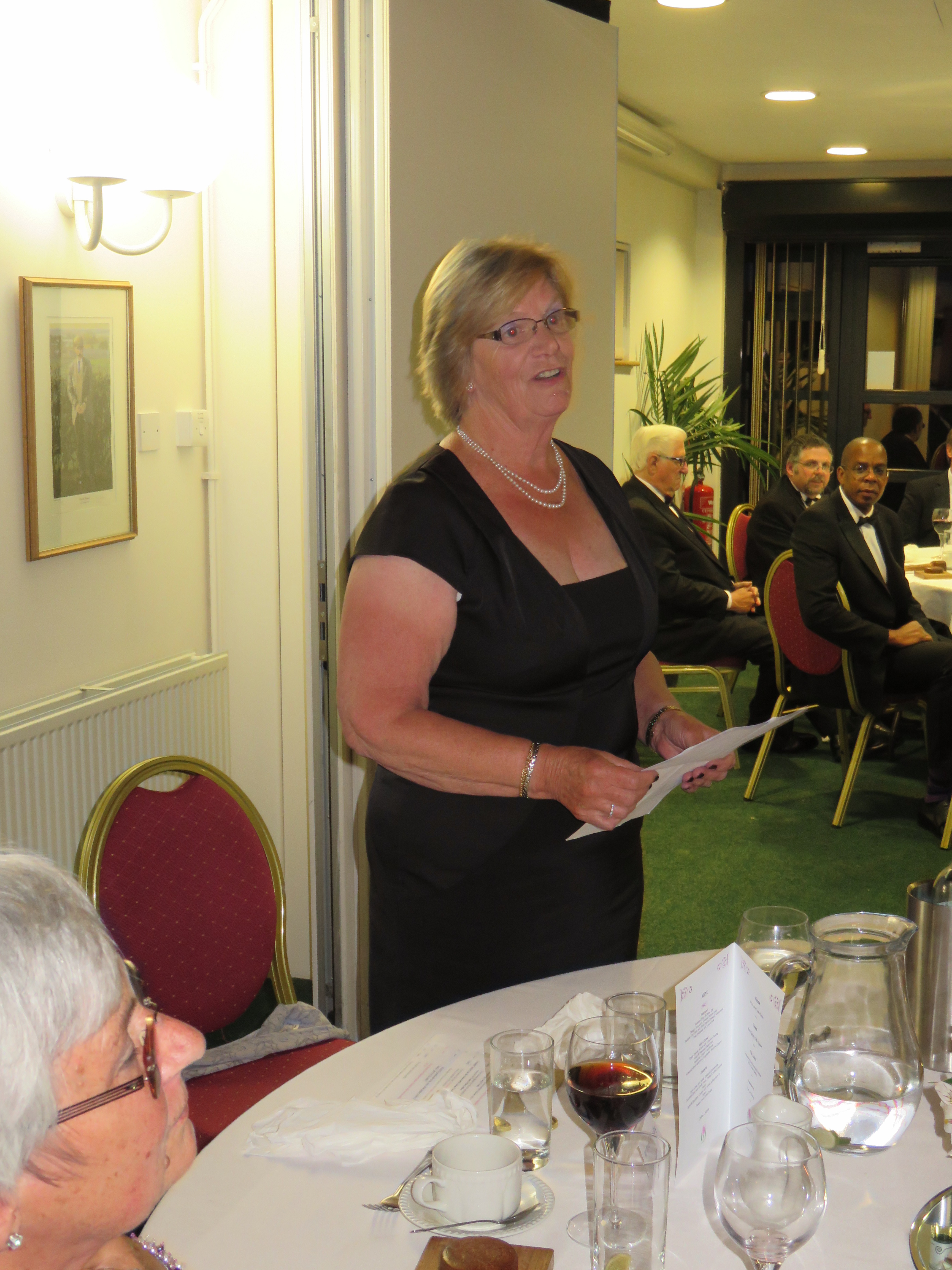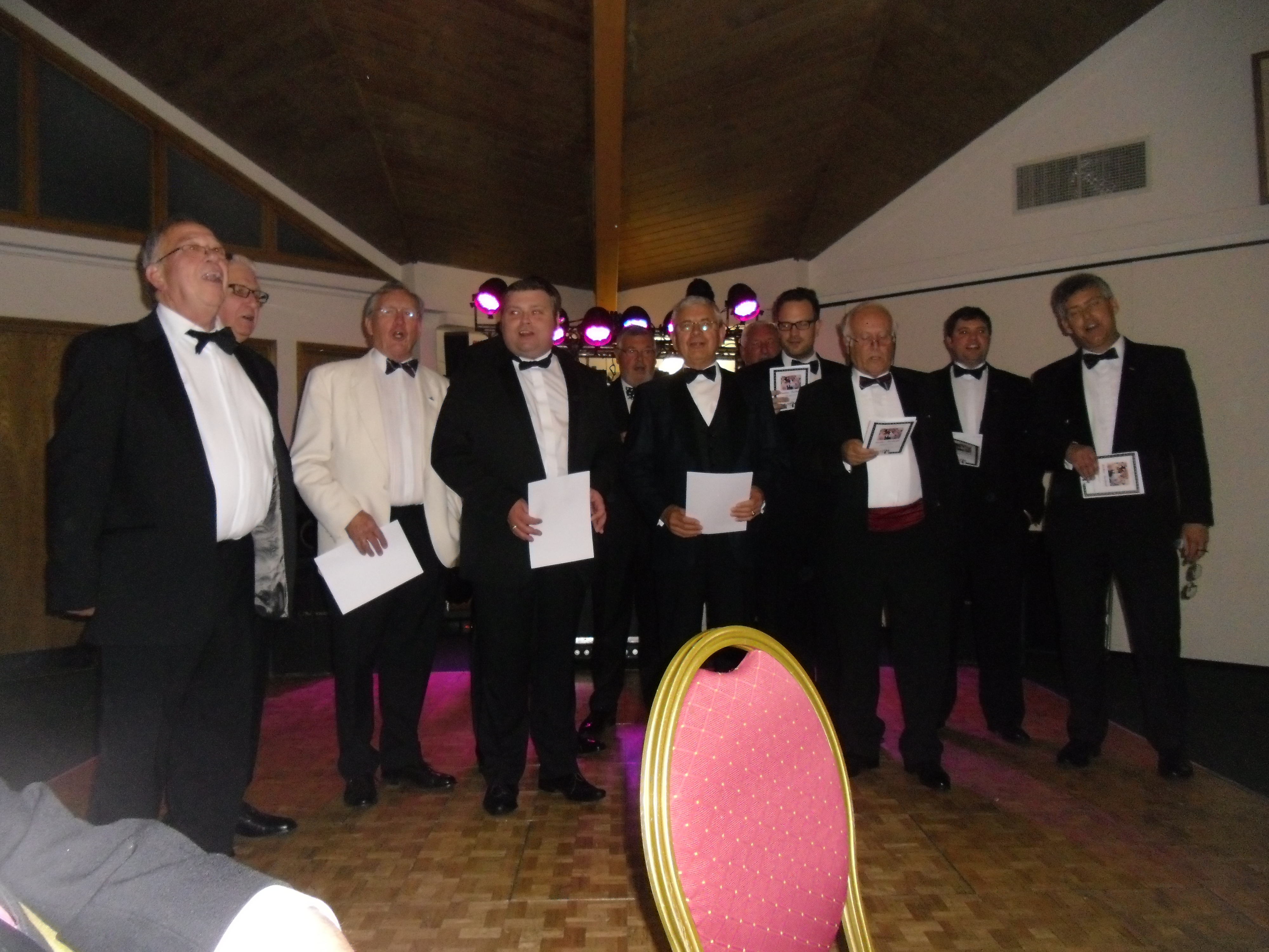The toast to The Ladies was proposed by the Master, W Bro Chris Paisley, and Mrs Jo Paisley eagerly responded on behalf of The Ladies – for which she was duly rewarded with a bouquet. The Brethren of Innsworth Lodge – re-designated The Innsworth Choir – serenaded the Ladies with the “Ladies Song” (revealing more enthusiasm than skill), and the Ladies Gifts were distributed and happily received. The Lodge JW, Bro Mark Cliffe, rounded off the tributes with poetic largesse!