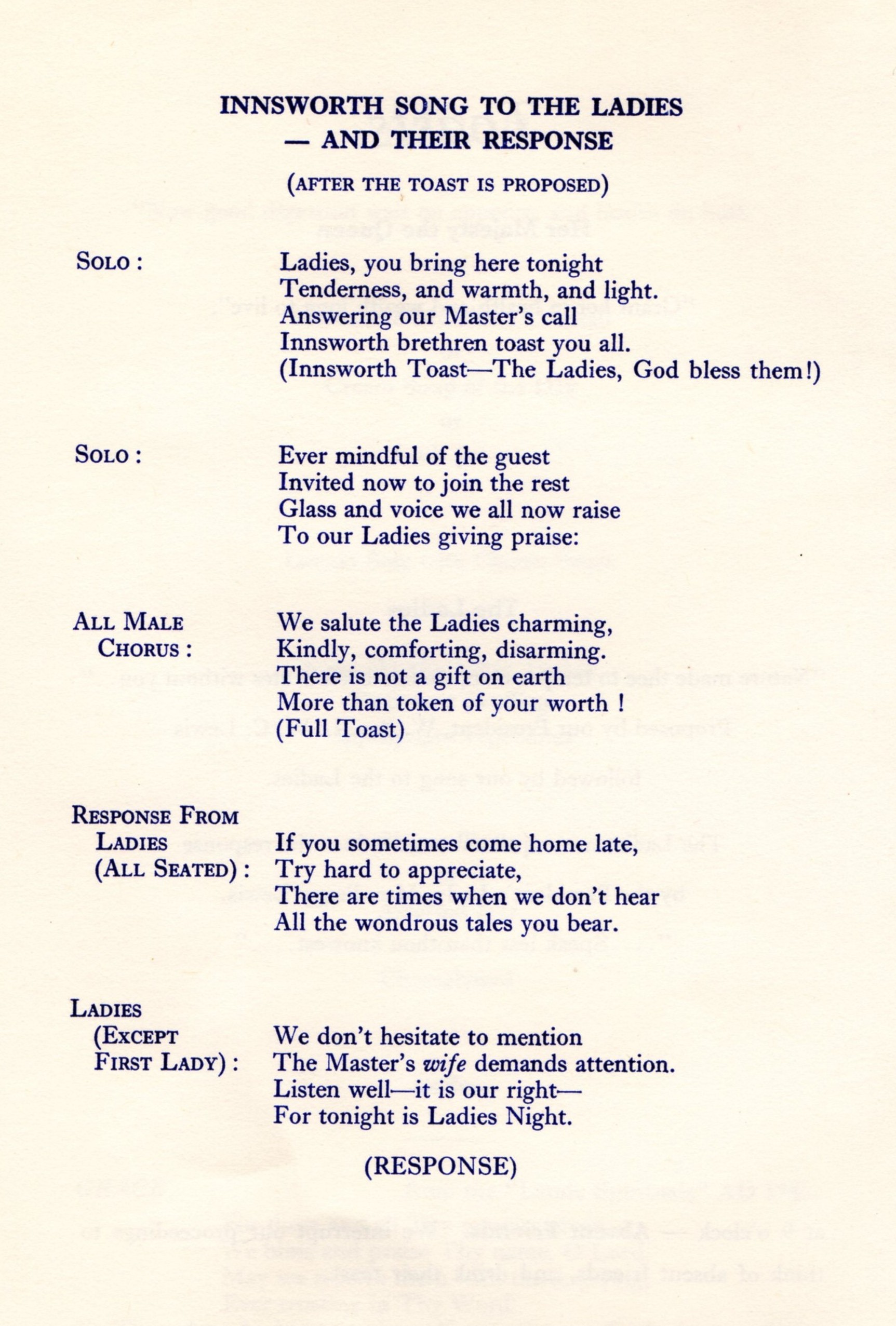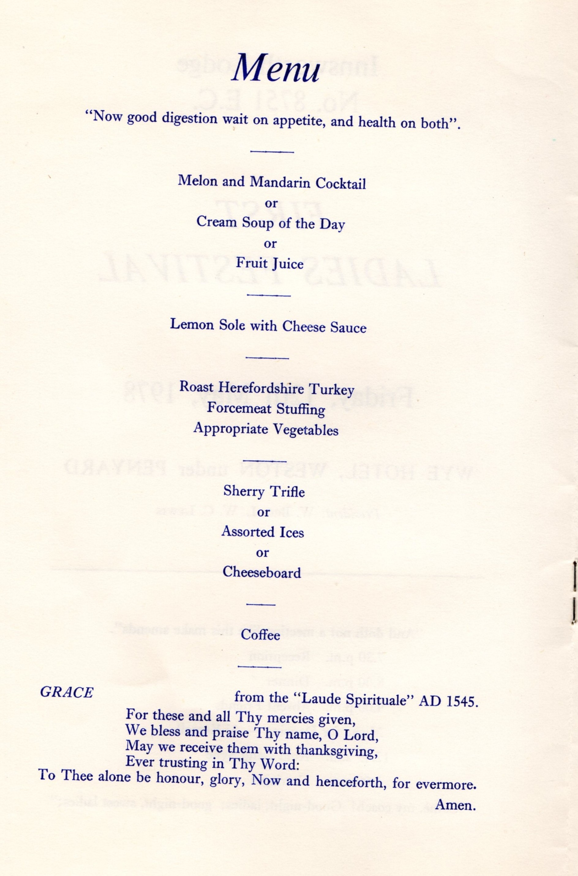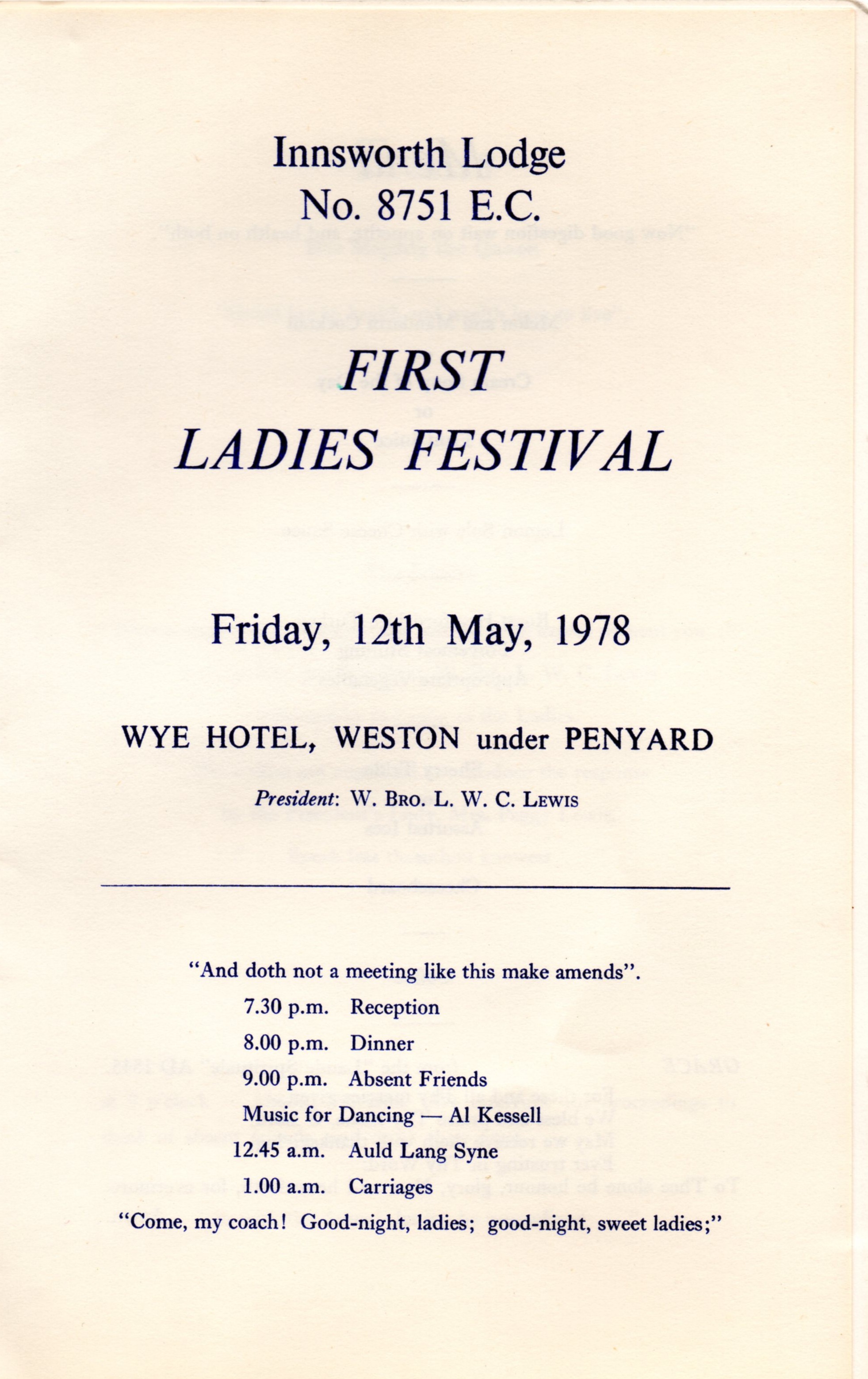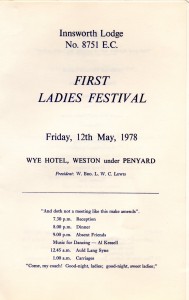 A copy of the programme from the Innsworth Lodge First Ladies Festival on Friday 12 May 1978 was recently passed to the Lodge Charity Steward, W Bro Tom Robson, and this historical document is now displayed here for your information.